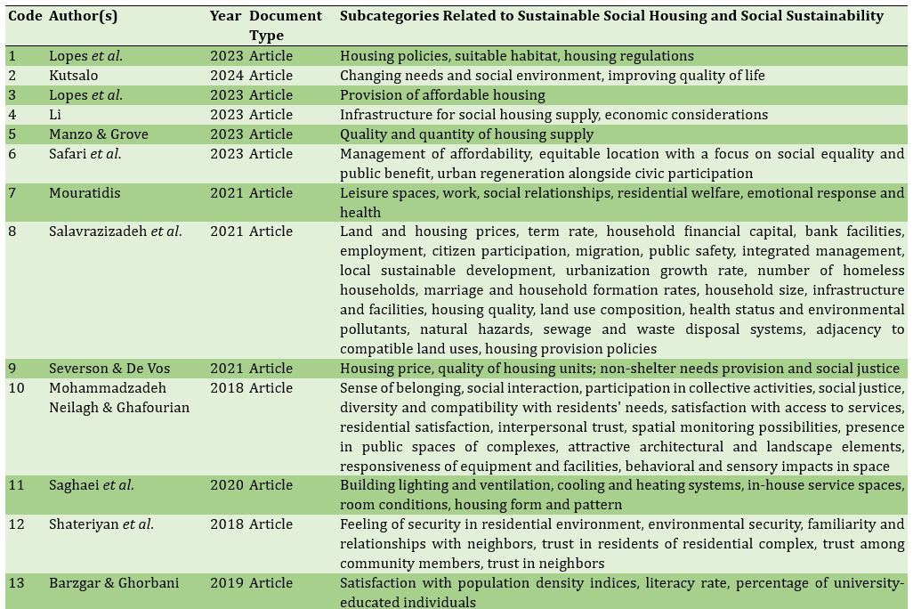 2. Alaei A, Yazdanfar A, Hosseini S, Norouzian Maleki S (2021). A framework for the components of social sustainability in housing based on content analysis of relevant studies. Journal of Sustainable Architecture and Urban Design. 8(2):81-94. [Persian] [