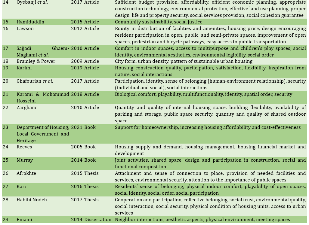20. Kari S (2016). Designing a residential complex with a social sustainability approach in the city of Tabriz [dissertation]. Tabriz: Tabriz Islamic Art University. [Persian] [