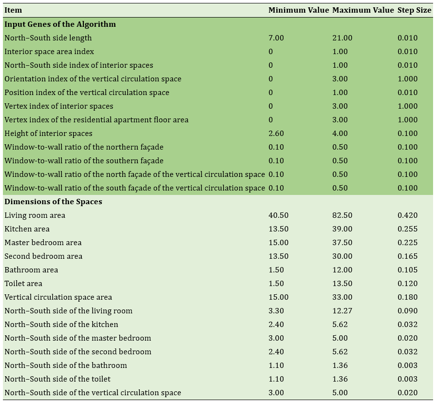 Table 5. Stepwise definition of structural systems and materials genes in spatial configuration optimization models and their resulting specifications