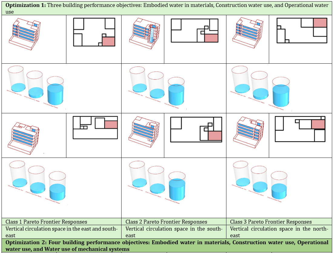 Figure 1. Diversity of design alternatives in each class across the two building configuration optimization processes based on water performance